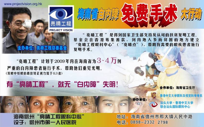 「亮睛工程」應海南省政府邀請承擔「海南省無白內障盲省」項目