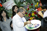 Mr. Manuel Filipe Pereira 即場示範瓷畫創作。 |