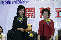 香港瓷畫會長及創會人胡陳碧華女士頒發紀念品予影視界名人趙雅芝小姐,以感謝趙小姐對是次慈善活動的持
