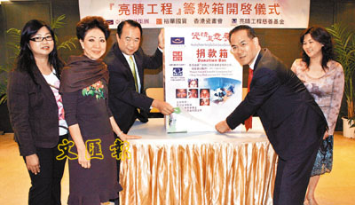女士、亮睛工程慈善基金副主席周伯展醫生及香港瓷畫會代表共同主持,見證點算過程。余鵬春副總經理表示義賣瓷畫反應熱烈,有顧客買不到瓷畫時,則購買畫冊以示支持。周伯展醫生亦感謝各界人士的慷慨解囊,對於亮睛工程首次舉辦公開籌款活動便有如此佳積,感到喜出望外。