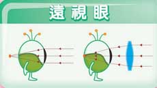 ‧眼球過短,因此光線會於視網膜後聚焦,無法看清楚近的東西。